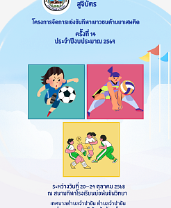 โครงการจัดการแข่งขันกีฬาเยาวชนต้านยาเสพติด ครั้งที่ 14 ประจำปีงบประมาณ 2569 ระหว่างวันที่ 20 - 24 ตุลาคม 2568 ณ สนามกีฬาโรงเรียนบ่อพันขันวิทยา