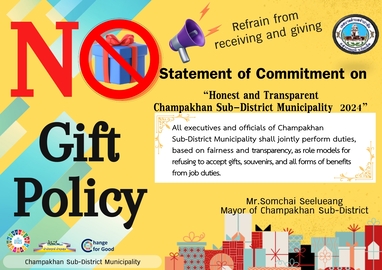 ประกาศเทศบาลตำบลจำปาขัน เรื่อง นโยบายไม่รับของขวัญและของกำนัลทุกชนิดจากการปฏิบัติหน้าที่ (No Gift Policy) ประจำปีงบประมาณ พ.ศ.2567