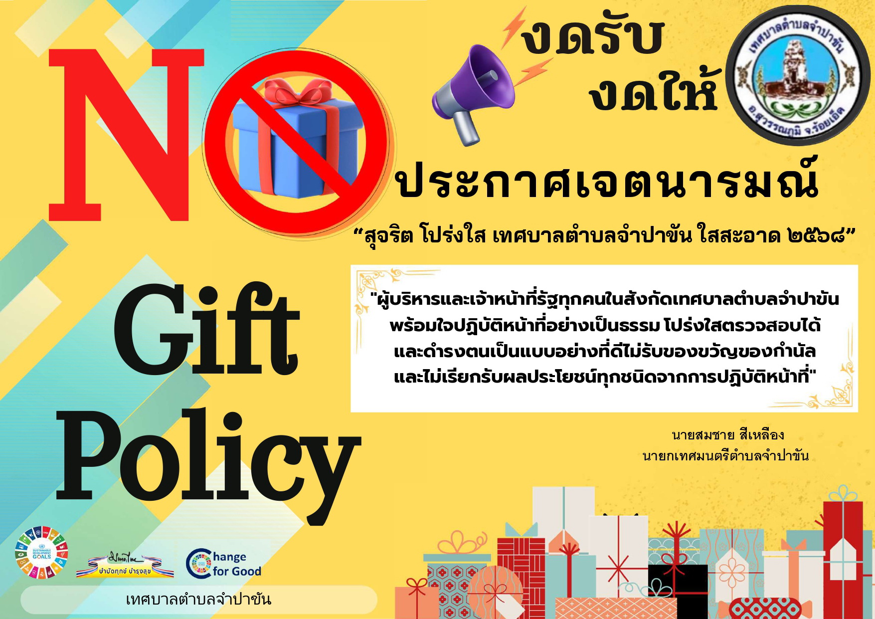 ประกาศเทศบาลตำบลจำปาขัน เรื่อง นโยบายไม่รับของขวัญและของกำนัลทุกชนิดจากการปฏิบัติหน้าที่ (No Gift Policy) ปรระจำปีงบประมาณ 2568